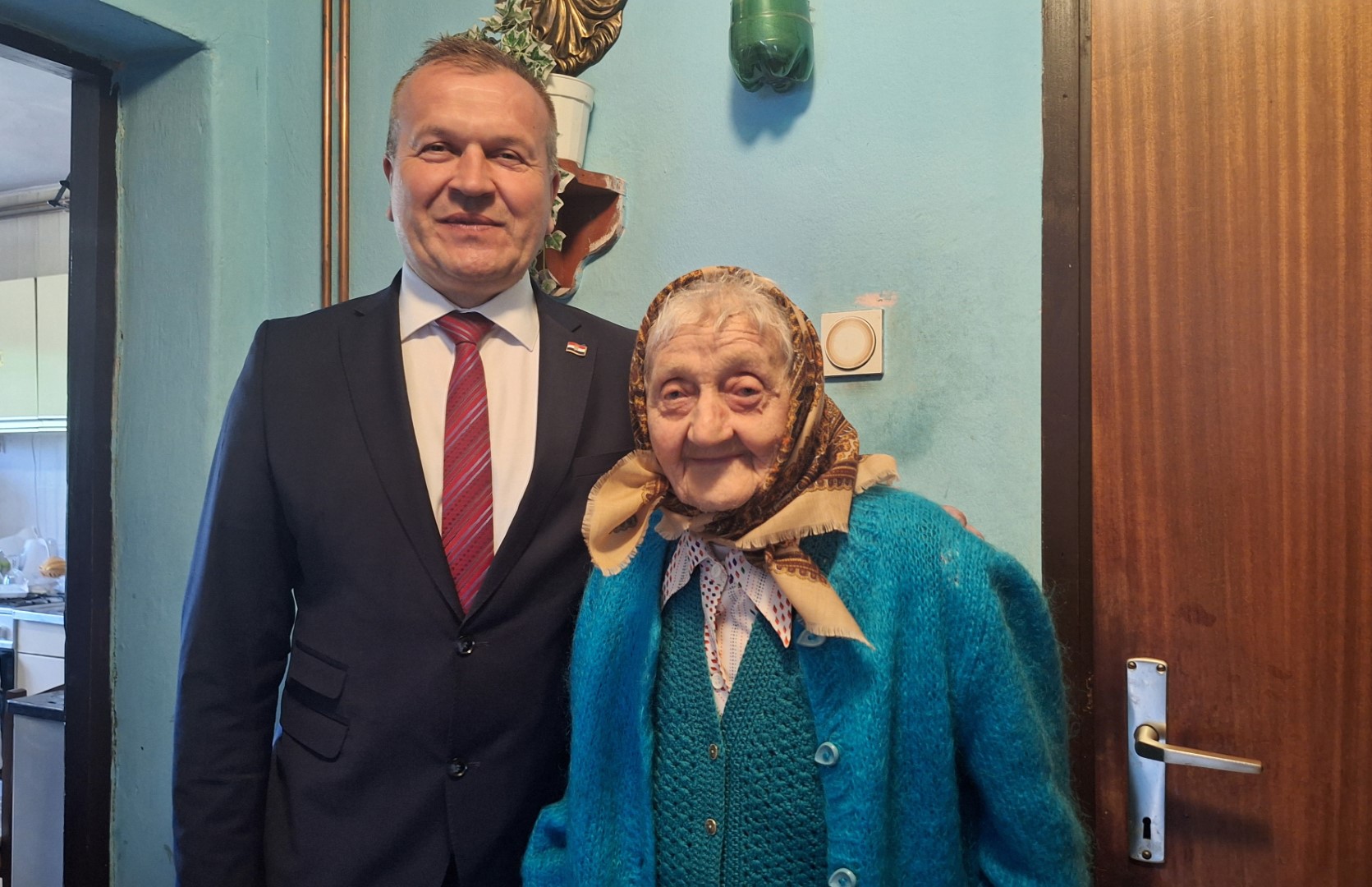 Vitalnu baku, koja još uvijek sadi krumpir i kuha sa svojom gerontodomaćicom, iznenadili su župan Anđelko Stričak i načelnik Općine Martijanec Branimir Nađ, a na poziv njezine praunuke Svjetlane Katalenić.
