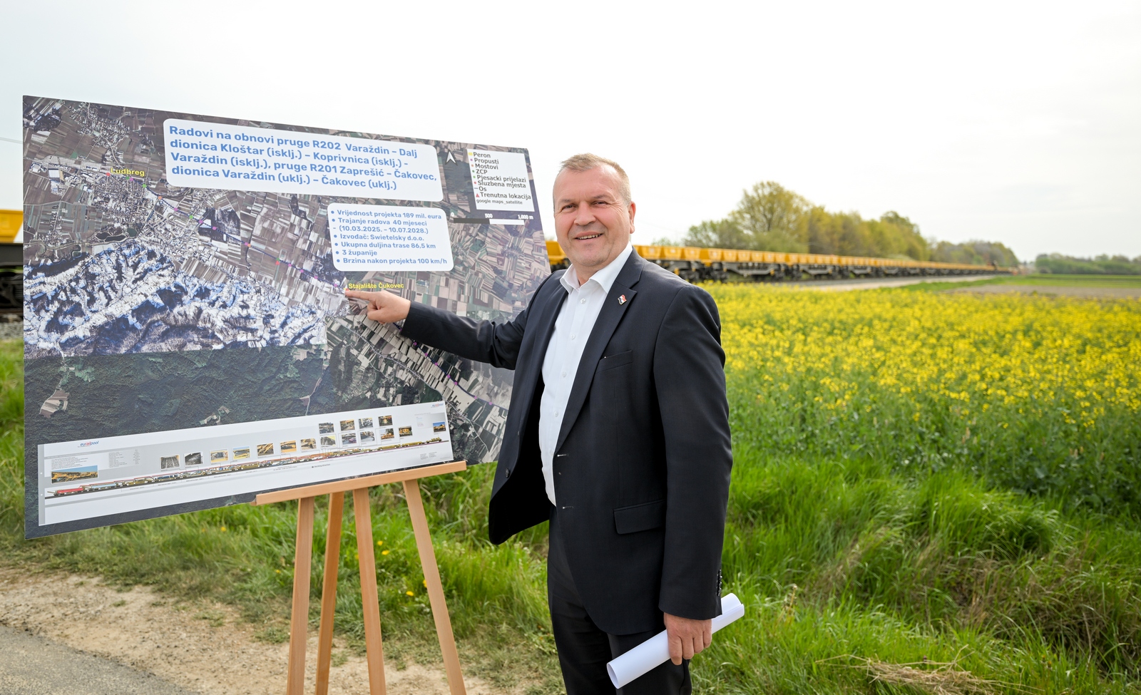 - Kad je riječ o europskim fondovima, uglavnom smo usmjereni na projekte na glavnim koridorima, koji su znatno veći i financijski zahtjevniji. Budući da iz redovnih sredstava nismo mogli pokriti sve potrebe obnove regionalnih i lokalnih pruga, odlučili smo se za aranžman s Europskom investicijskom bankom, iz čijeg se kredita financira i ovaj projekt. Radovi napreduju vrlo dobro i svi smo zadovoljni. Završetak se očekuje do kraja 2028. godine. Projekt se provodi u fazama, a posebno je impresivan specijalizirani stroj dug oko kilometar koji obavlja najveći dio radova na pruzi – rekao je Butković naglasivši kako je s ludbreškim gradonačelnikom Bilićem i županom Stričakom razgovarao i o Podravskoj brzoj cesti, kao i o projektu Intermodalnog centra.